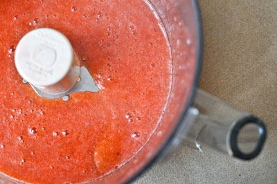 Клубнику моем,обрываем зеленые хвостики и засыпаем в миксер.Если клубника очень кислая,то можно добавить 1-2 ст.л сахара или меда,а если клубника растет вас на солнышке,и дождливое лето её никак не испортило,то сахар добавлять не нужно.