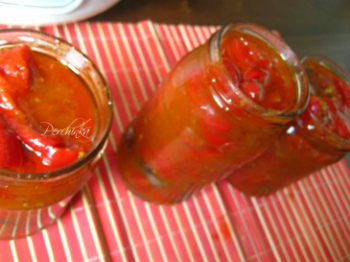 В этом году решила попробовать что-то новенькое заготовить из перца.Мой выбор пал на лечо из болгарского перца с грибами.Все требуемые овощи были в наличии,даже подосиновики вовремя оказались под рукой.Муж с опаской следил за мои приготовлениями и по выражению его лица я прочитала:"Это я есть не буду!"Но у меня остался стакан лечо,который не поместился в баночки и я уговорила его попробовать хотя бы ложку,так как остальное должна была отнести соседке на пробу.Но увы...Соседка его так и не попробовала,потому что стаканчик был пуст.И на этот раз улыбка на лице супруга мне сказала другое - сгодится!