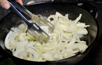 Лук порезать и обжарить слегка на всем масле.