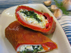 Перец нужно помыть и вытереть ,смазать со всех сторон маслом, положить его на противень в духовку или на чистый диск электроплиты, либо держать над огнем.Наша цель — чтобы кожица почернела,это зависит от величины вашего перца и толщины кожицы,обычно минут 15-20.Тут важно его не "перепечь", а то он в дальнейшем будет расползаться.